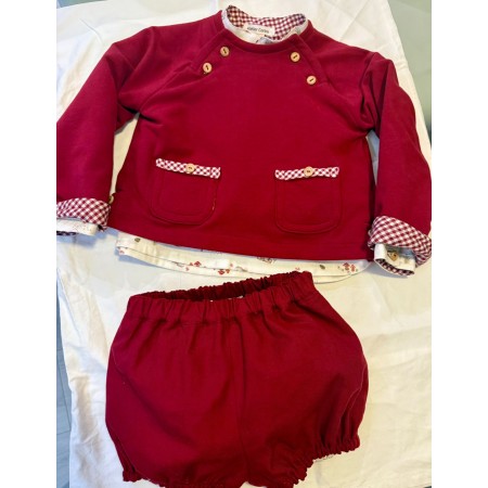 Conjunto verde chaleco vichy compuesto por camisa bambula blanca con goma en puños, falda tablas verde botella con pantalón interior con...
