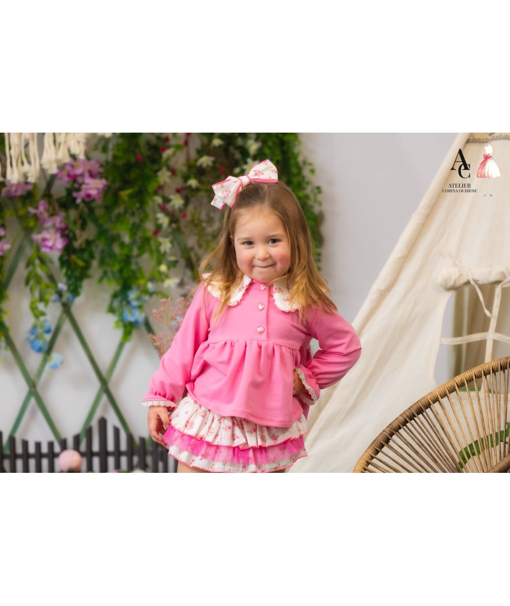 Braga falda estampada en flores con tres volantes de tul en el medio