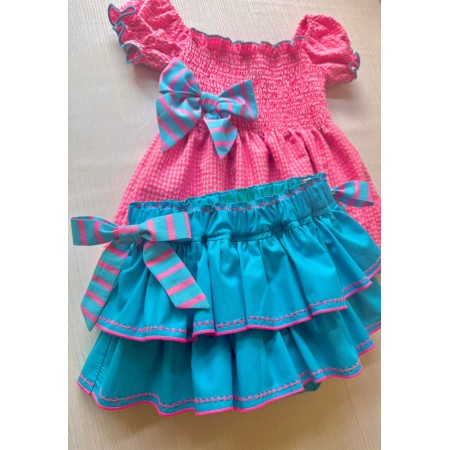 braga falda volantes turquesa y fucsia fluorescente