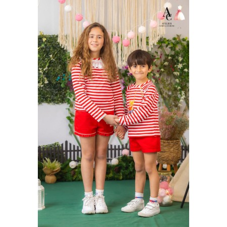 Pantalon rojo niña con volante bajo, bolsillos y goma ajustable en la cintura