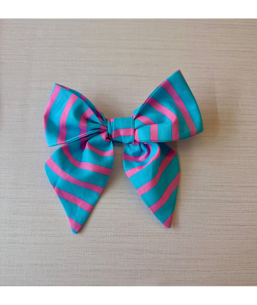 Lazo de rayas turquesa y fucsia con pinza para agarrar
