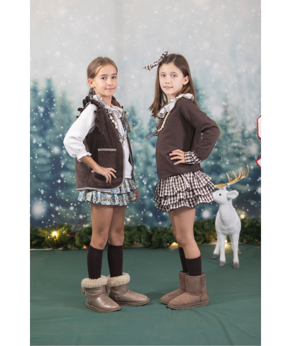 Chaleco marrón hecho con pana y forrado con tela vichy