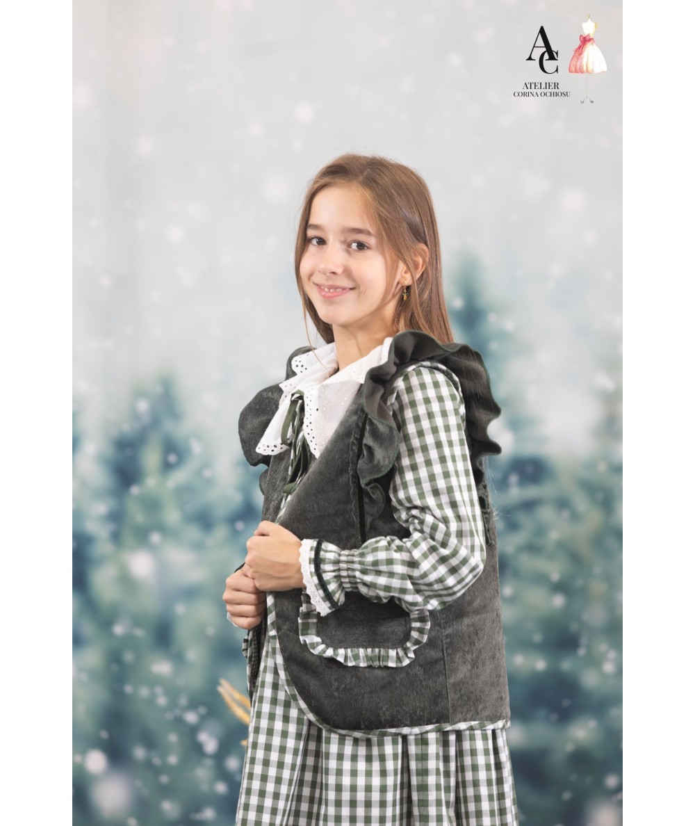 Chaleco pana verde con contraste vichy