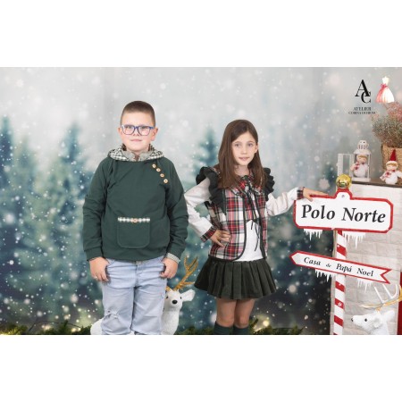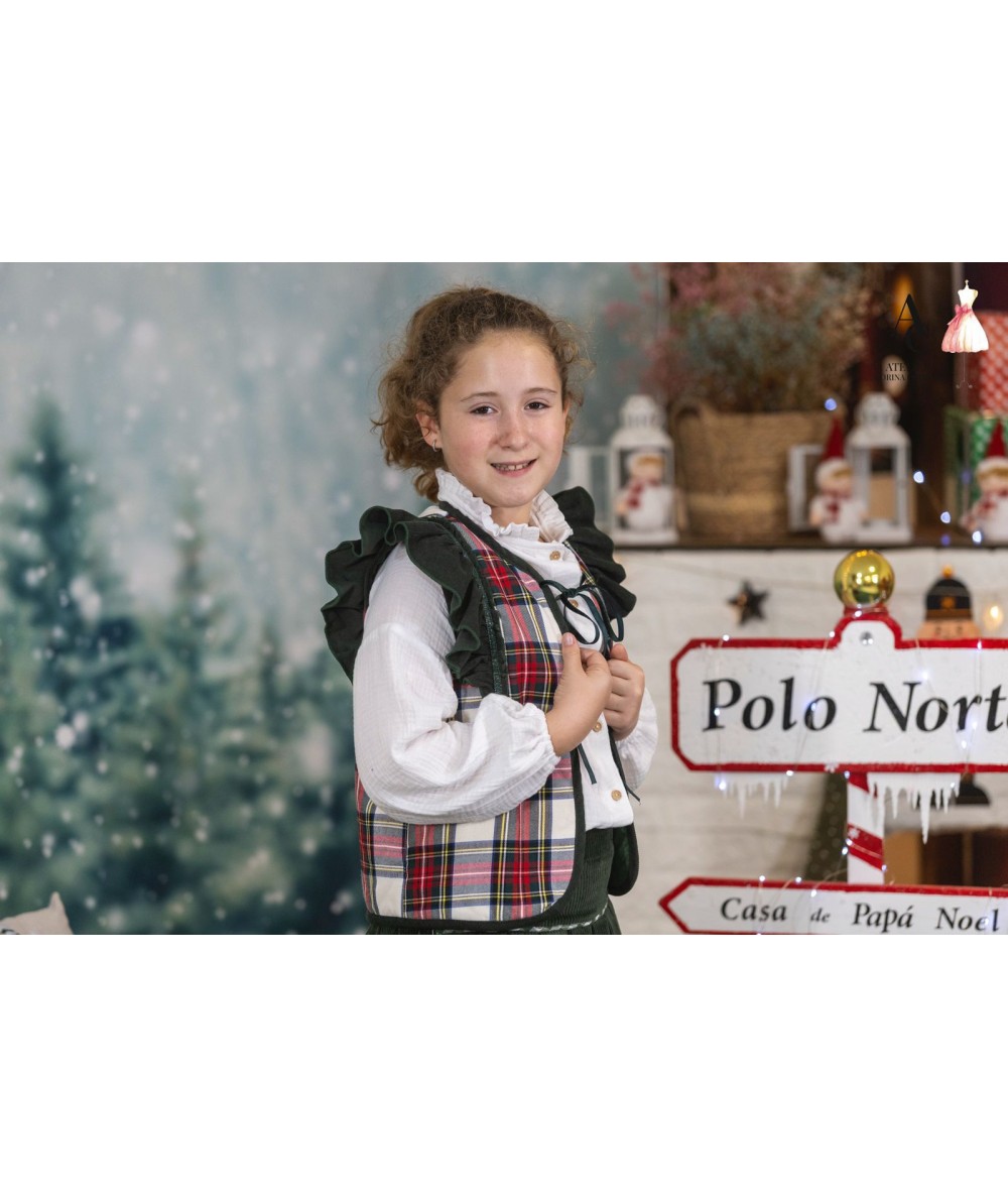 Chaleco de Navidad en tela de cuadros con volantes verdes en los hombros