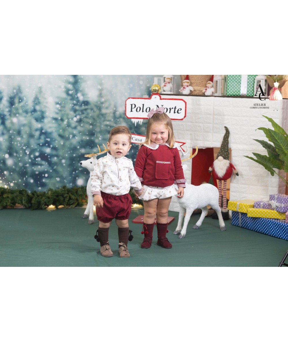Camisa niño en Viyela con estampado de ciervos en tonos burdeos y tostado